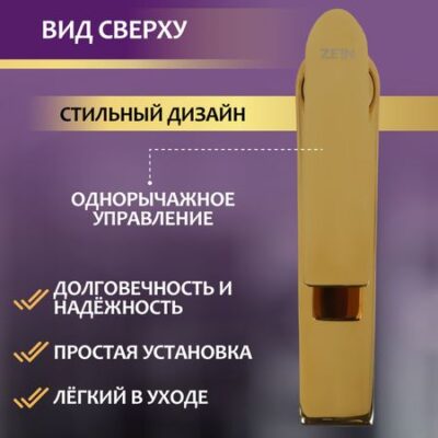 Смеситель для раковины ZEIN Z3874, однорычажный, высота излива 12 см, латунь, черный/gold=. Смеситель для раковины ZEIN предназначен для установки на горизонтальной поверхности — кухонной мойке или столешнице. У данного смесителя изысканный вид, который прекрасно впишется в любой интерьер. Сетка фильтрации очищает воду от нежелательных примесей и загрязнений. Смеситель выполнен в дизайнерском стиле с однорычажным управлением, что делает использование очень удобным.