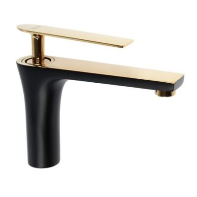 Смеситель для раковины ZEIN Z3874, однорычажный, высота излива 12 см, латунь, черный/gold=