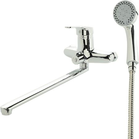 Смеситель для ванны универсальный Agger Exact A2121100 – однорычажный, с длинным изливом. В комплектации с душевым набором, в состав которого входят: держатель, лейка с 5 режимами, шланг. Выполнен в стиле ретро. Корпус смесителя изготовлен из качественного латунного сплава и оснащен керамическими кран-буксами, которые позволяют контролировать напор воды и регулируют температуру.