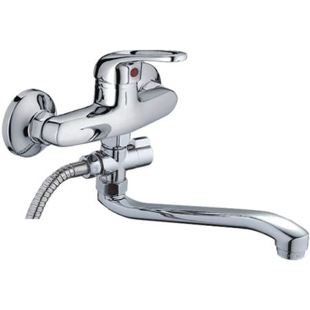 Смеситель для ванны Ledeme L2139-B, оснащен одной рукоятью с целью контроля напора. Отличается комфортным управлением и надежностью на протяжении работы, благодаря чему пользуется в наше время очень большой популярностью у клиентов. Аэратор в смесителе поможет обеспечить равномерный поток воды , а также ее смягчение. Специальная сетка в устройстве отфильтровывает различные примеси. Настенные смесители – традиционный вариант, который в настоящее время наиболее часто устанавливается в ванной. Помимо обычного излива такие модели оснащаются отдельным выходом на душевой шланг и лейку. Современный прибор – это объединение классического конструкционного решения и самого смелого и необычного оформления. Такая сантехника отлично подходит для тех, кто желает идти в ногу со временем. Прибор изготавливается из силумина, это не очень надежный материал, в отличии от прочих. Чаще всего представленную модель приобретают на временное пользование. Срок службы приблизительно 2-5 лет. Излив устройства находится под рычагом управления водой. В данном приборе излив имеет возможность вращения, что напрямую положительно влияет на функциональность. Внутри данного прибора имеется картридж из керамики 35 миллиметров, смешивающий воду для получения необходимой температуры. Особенностью прибора данного типа считается надежность и долговечность. У данных смесителей переключение подачи воды на душевой шланг или излив происходит путем поворота специального рычага, который выносится на переднюю панель. Установка модели производится на два отверстия. В комплекте идет, инструкция по установке, гарантийный талон, душевая лейка , держатель лейки , комплект эксцентриков , комплект отражателей.