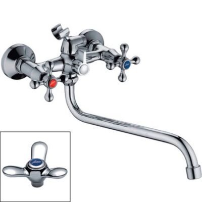 Смеситель для ванны Ledeme L2312, классический вариант, обладающий двумя вентилями для контроля воды. Наличие аэратора в смесителях поможет обеспечить равномерный поток воды , а также ее относительное смягчение. Сетка в устройстве отфильтровывает примеси. Настенные приборы – традиционный вариант, который на данный момент времени наиболее часто устанавливается в ванных комнатах. Кроме обычного излива модели оснащаются отдельным выходом на душевой шланг и лейку. модель в классическом стиле. К представленной группе изделий принадлежит традиционный вид смесителей, которые произведены из латуни – надежного, долговечного, прочного металла. Довольно часто модели такого вида покрываются специальным хромированным покрытием, благодаря чему обладают У нижнего смесителя излив располагается ниже рычага регулировки уровня подачи воды. К данному типу относится большинство приборов. Востребованная модель, обладающая поворотным изливом. Его возможно вращать в различные стороны, что повышает производительность применения такого сантехнического прибора. Такой тип приборов оснащается кран-буксой. Не оглядываясь на большой возраст этой технологии, она как и раньше достаточно популярна вследствие своей надежности и практичности использования. У данных смесителей переключение воды на излив или душевой шланг производится посредством поворота специального рычага, вынесенного на переднюю панель прибора. В этом случае предполагается, что установка смесителя происходит на два отверстия, которые имеются в умывальнике или раковине. На данный момент времени можно найти немало подобных моделей. В комплекте идет, инструкция по установке, гарантийный талон, душевая лейка , держатель лейки , комплект эксцентриков , комплект отражателей.