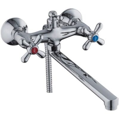 Смеситель для ванны Ledeme L2518, имеется два рычага для контроля напора горячей и холодной воды. Качественный аэратор в смесителях обеспечит одинаковый поток воды, по причине того, что сеточка будет рассеивать напор, вода становится мягче. Также сеточка отфильтрует примеси и сбережет около пяти кубометров воды в течение года. Настенные приборы – традиционный вариант, который в наше время наиболее часто устанавливается в ванных комнатах. Кроме обычного излива такие модели оснащаются выходом на душевой шланг. Классика – это модели, уже давно проверенные временем. К представленному типу смесителей относятся функциональные, красивые, надежные модели, обладающие классическим дизайном. К данной категории товаров принадлежит традиционный вид приборов, которые изготовлены из латуни – надежного, долговечного, прочного материала. Довольно часто модели такого типа обрабатываются высококачественным покрытием, благодаря чему обладают безупречный внешний вид. Излив устройства находится под рычагом управления подачи воды. Популярная модель, которая обладает поворотным изливом. Его можно вращать, что намного повышает производительность использования данного прибора. Смеситель оснащен керамической кран-буксой. У таких приборов переключение воды на душевой шланг или излив происходит с помощью поворота рычага, который вынесен на переднюю панель. Установка этой модели выполняется на два отверстия. В комплекте идет, инструкция по установке, гарантийный талон, душевая лейка , держатель лейки , комплект эксцентриков , комплект отражателей.