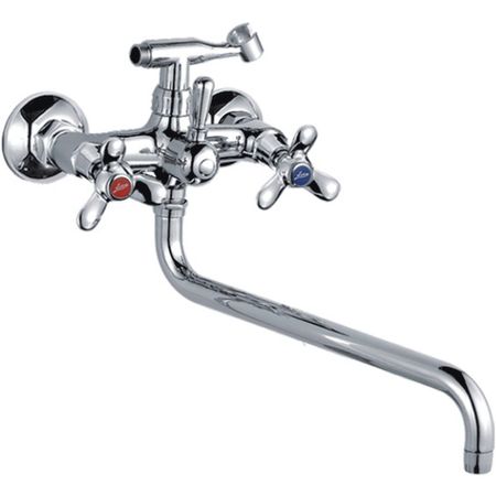 Смеситель для ванны Ledeme L2612, два рычага, каждый контролирует напор воды. Аэратор в данном приборе позволяет обеспечить равномерный поток воды , а также ее смягчение. Специальная сетка внутри устройства отфильтровывает разные примеси. Устанавливается в стену с целью подключения подводки из стены. модель выполняется в классическом стиле. Материал в приборе — латунь, это надежный красивый материал, который обеспечивает прекрасное нанесение хромированного покрытия. Излив данного прибора находится ниже рычага управления подачи воды. Излив прибора способен вращаться, что напрямую положительно влияет на практичность. Данный смеситель оснащен кран-буксой. У таких приборов переключение подачи воды на душевой шланг или излив происходит с помощью поворота специального рычага, который выносится на переднюю панель. В данном варианте подразумевается, что монтаж прибора происходит на два отверстия, которые расположены в раковине или умывальнике. В настоящее время можно найти немало подобных моделей. В комплекте идет, инструкция по установке, гарантийный талон, душевая лейка , держатель лейки , комплект эксцентриков , комплект отражателей.