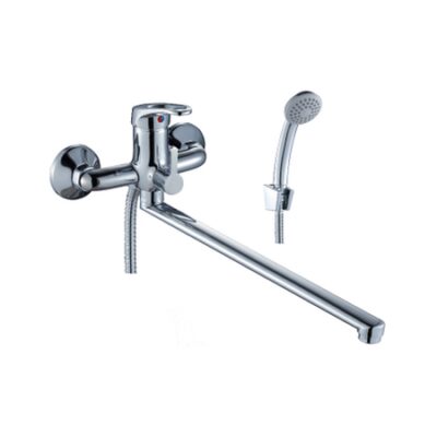 Смеситель одноручный для ванны с плоским поворотным изливом 350 мм, хром В комплекте: Пластиковый аэратор с функцией легкой очистки Керамический картридж 35 мм Переключатель с керамическими пластинами Аксессуары в комплекте (шланг 1,5 м, настенное крепление, 1-функциональная лейка с функцией легкой очистки) Присоединительная группа (эксцентрики с отражателями) для вертикального крепления Металлическая рукоятка