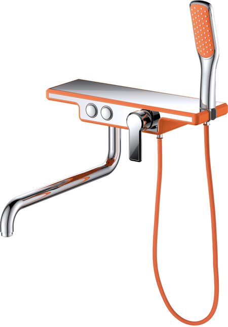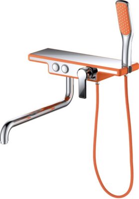 Смеситель для ванны с душем D&K Berlin.Technische DA1443313 длинный излив, оранжевый-хром Гарантия — 5 лет. Бесплатное сервисное обслуживание "D&K" — 10 лет.* Смесители немецкого бренда "D&K" производятся из латуни класса «А», что соответствует стандартам латуни HPB59-1, в РФ марка ЛЦ40С (ГОСТ 15527-2004) Толщина стенок смесителей «D&K» составляет 2,5 – 3,5 мм, Картридж D-35 мм. с высокопрочными пластинами из минерала Корунд (Al₂O₃) оксида алюминия. Низкий уровень шума: 17-19 дБ (сопоставим с шелестом листвы). Количество циклов открытия/закрытия — 500 000 Изделие тестируются под давлением воды и воздуха от 3 Атм до 10 Атм, на работоспособность комплектующих и качества сборки в соответствие стандартам. Высота смесителя: 223 мм. Длина излива: 457 мм. (от стены). Излив поворотный на 360° Пластиковый аэратор уменьшает расход воды. Дивертер (керамический) с высокопрочными пластинами из минерала Корунд (Al₂O₃) оксида алюминия. Душевой шланг — 150 см. Душевая лейка трёхрежимная. Высокое качество по доступной цене. Изделие имеет сертификат соответствия ГОСТ