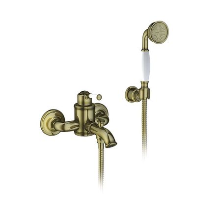 Главная » Строительство и ремонт Смеситель для ванны с душем Timo Arisa 5314/02Y антик Просмотров 4 Смеситель — 1 шт. Ручная лейка (латунная) — 1 шт. Шланг душа 1,5 м — 1 шт. Эксцентриковые соединители — 2 шт. Декоративные отражатели — 2 шт. Держатель ручной лейки (латунный) — 1 шт. Инструкция — 1 шт. Timo