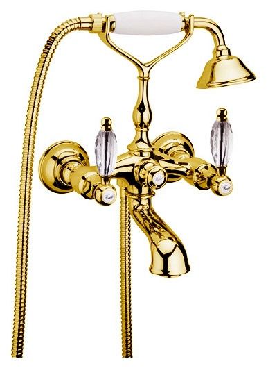 Смеситель для ванны Webert Aria AL720201010 с душевым гарнитуром золото, ручки Swarovski