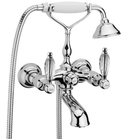 Двухвентильный смеситель для ванны с ручками, украшенными кристаллами Swarovski, устанавливаемый на два отверстия, в комплекте с душевым гарнитуром.