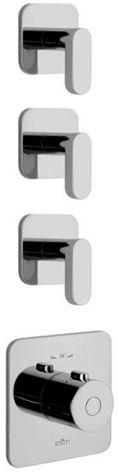 Встраиваемый термостат для ванны Webert Living LV971502015 на три потока, с внутренней частью и монтажной шиной (планкой), без душевого гарнитура, без излива. Покрытие: глянцевый хром. Материал: латунь (содержание свинца: <0.2%). Увеличенная пропускная способность. Стопор безопасной температуры 38 С°. Стандарт подключения G3/4.