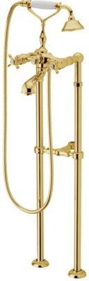 Смеситель для ванны Webert Ottocento OT720801010 с душевым гарнитуром. Цвет: золото. Материал: латунь (содержание свинца: <0.2%). Излив 215 мм. Расстояние между центрами креплений: 150 мм. Стандарт подключения: G1/2. ручной душ75 мм. Шланг 1500 мм.