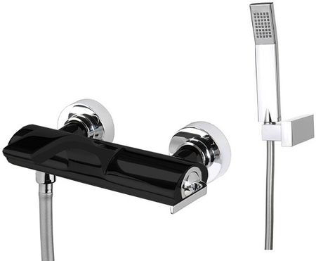 Описание: однорычажный настенный смеситель для ванны, устанавливаемый в два отверстия, в комплекте с душевым гарнитуром.