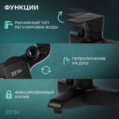 Смеситель для ванны ZEIN Z3855, однорычажный, душевой набор, лейка 5 режимов, черный. Смеситель для ванны ZEIN Z3852 — это надежное и стильное устройство, предназначенное для смешивания горячей и холодной воды. Изготовлен смеситель из качественных материалов, что обеспечивает его долговечность и надежность в эксплуатации. Благодаря однорычажной конструкции, вы сможете легко и быстро регулировать температуру и напор воды. Оснащен смеситель душевым набором, включающим лейку с 5 режимами подачи воды, что обеспечивает комфортное использование. Этот смеситель станет отличным дополнением вашей ванной комнаты.