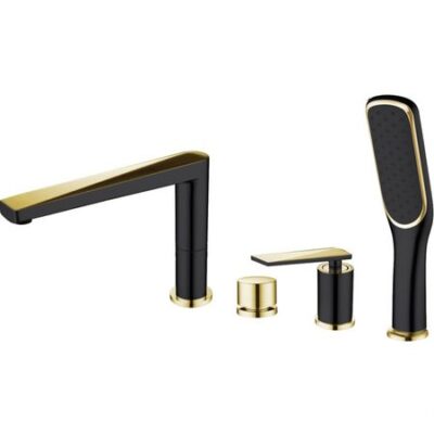 Смеситель на борт ванны Boheme Venturo 380-B черный/золото