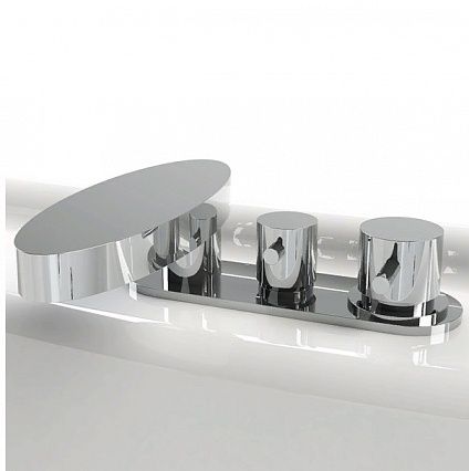 Смеситель состоит из широкого, плоского излива, рычага управления горячей и холодной водой и переключателя между режимами "излив-душ". Все компоненты устанавливаются на борт ванны и занимают минимум места. Один рычаг служит для управления температурой воды и её потоком, а другой — для переключения между режимами "излив" и "душ", с переключением на лейку, которая входит в комплект.