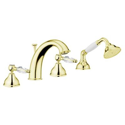 Главная » Строительство и ремонт Смеситель на борт ванны Webert Alexandra AL730101 Золото/кристаллы Swarovski Просмотров 6 Смеситель на борт ванны Webert Alexandra AL730101010 с душевым гарнитуром. Цвет: золото. Ручки: кристаллы Swarovski. Материал: латунь (содержание свинца: <0.2%). Излив 190 мм. Стандарт подключения: G1/2. ручной душ75 мм. Шланг 1500 мм. Webert
