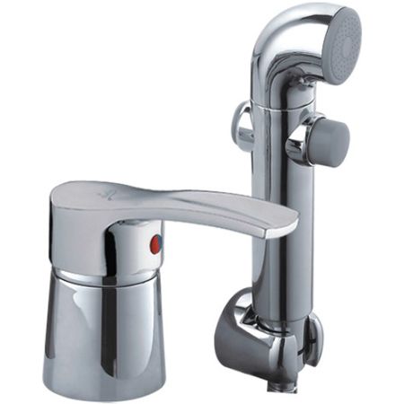 Смеситель с гигиеническим душем Ledeme L5164, одна рукоять для регулировки напора. Конструкция приборов на шпильке предполагает их монтаж в специально приготовленное отверстие с помощью креплений. Чаще всего используются две шпильки, которые зажимаются винтами с задней стороны умывальника или раковины. Прибор выполнен в новом современном оформлении, смеситель с гигиеническим душем в ярко выраженном дизайнерском исполнении. Основной материал прибора — латунь, проверенный красивый материал, обеспечивающий великолепное нанесение хромированного покрытия. Модель традиционной округлой формы. Представленная модель не имеет излива. Приборы снабжаются картриджами из керамики, диаметр составляет 40 мм. Высококачественная керамика сможет выдержать высокие нагрузки, а также функционирует с минимальным уровнем шума. Смеситель Ledeme L5164 с функцией душа. В данном варианте предполагается, что установка смесителя осуществляется на два отверстия, имеющихся в раковине или умывальнике.