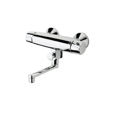 С переключателем, длина излива 300 мм, подключение горячей воды с левой стороны.
