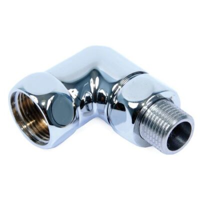 Тера Соединение угловое г/ш 1х1 деталь для подключения под прямым углом патрубков водяной сушки для полотенец к системе отопления. Аксессуар имеет разный тип резьбы с обеих своих сторон: с одной стороны установлена гайка с внутренней резьбой, а с другой имеется штуцер, то есть резьба наружная.