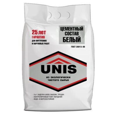 Главная » Строительство и ремонт состав цементный UNIS белый водо-морозостойкий 5кг Просмотров 13 Вес: 5кг Марка: М400 Применение: для внутренних, наружных работ UNIS