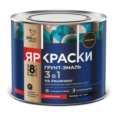 Главная » Строительство и ремонт Специальные эмали Ярославские краски Грунт-эмаль ЯРКРАСКИ на ржавчину 3 в 1 молотковая коричневая, банка 1,8 кг Просмотров 12 Широкий ассортимент по выгодным ценам. Регулярные акции. Программа лояльности Ярославские краски