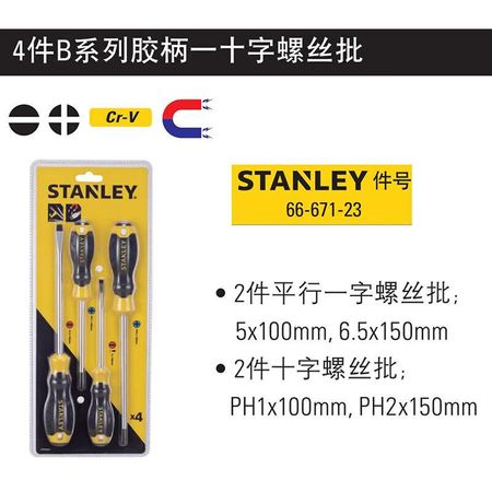 Stanley 4-х предметная отвертка с пластиковой ручкой серии B, крестовая отвертка, набор отверток, набор отверток 66-671-23