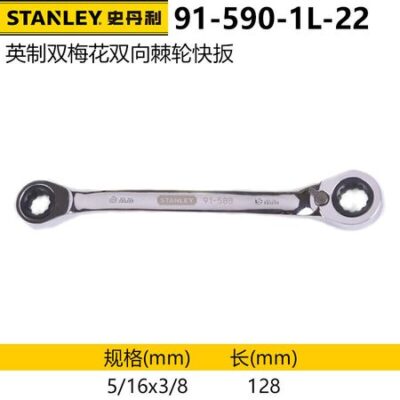 Stanley 91-590-1L-22, хром-ванадиевая сталь, двойной ключ с трещоткой, быстродействующий дюймовый размер 5/16 дюйма × 3/8 дюйма, один