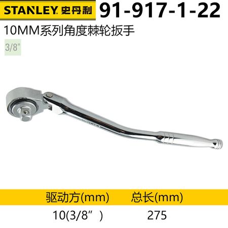 Stanley 91-917-1-22 Угловой ключ с трещоткой из хром-ванадиевой стали, метрическая головка 3/8 дюйма, 10 мм, серия One