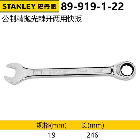 Stanley, хром-ванадиевая сталь, полированная трещотка, быстродействующий ключ двойного назначения, метрический, 19 мм 89-919-1-22 один