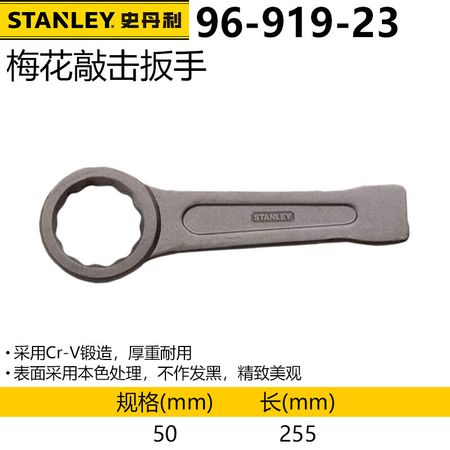 Stanley, хромованадиевая сталь, ударный сливовой ключ с прямой ручкой, большой ударный гаечный ключ, метрический, 50 мм, 96-919-23, один