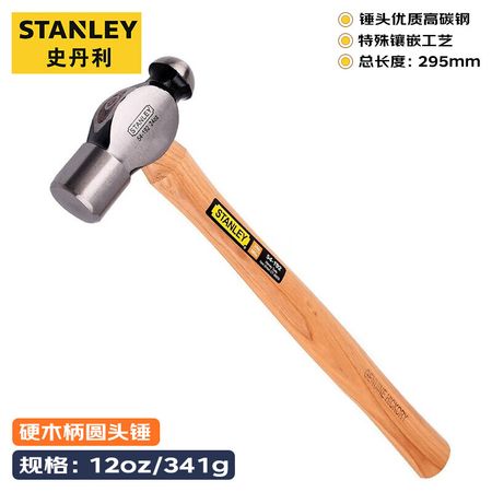 Stanley из твердой древесины с ручкой, молоток с шариковой головкой, ударный инструмент, молоток, молоток для электрика, деревообрабатывающий молоток, 12 унций, STHT54190-8-23