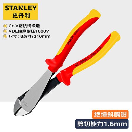 Stanley Изолированные диагональные плоскогубцы FatMax. Плоскогубцы для электрика, выдерживающие высокое напряжение 1000 В. Кусачки для проволоки 8,5 дюйма 84-005-23