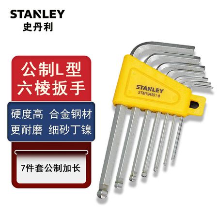 Stanley Ключ шестигранный L-образный, отвертка шестигранная дюймовая, набор из 7 предметов, метрический удлинитель