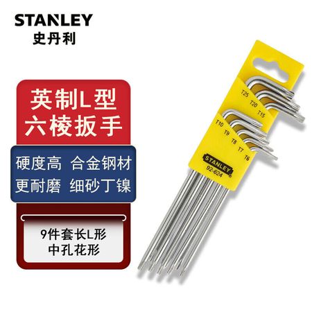 Stanley L-образный внутренний шестигранный ключ, британская шестигранная отвертка с внутренним шестигранником, набор из 9 предметов, длинное L-образное среднее отверстие в форме цветка