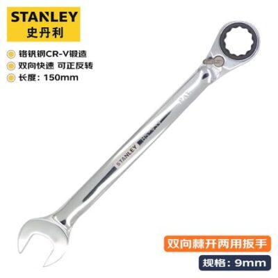 Stanley Метрическая полированная двусторонняя трещотка, открытый быстрый ключ двойного назначения, накидной ключ 9 мм 89-519-1L-22
