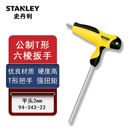 Stanley метрический Т-образный внутренний шестигранный ключ, удлиненная сверхтвердая внутренняя шестигранная отвертка, метрический шестигранный ключ, плоская головка 2 мм
