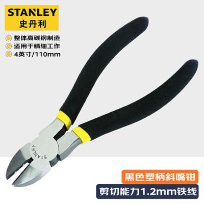 Stanley Миниатюрные диагональные плоскогубцы с черной ручкой. Маленькие плоскогубцы из высокоуглеродистой стали размером 4 дюйма. Диагональные плоскогубцы со смещенными плоскогубцами 84-124-23.
