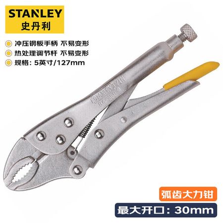 Stanley Мощные плоскогубцы с изогнутыми зубьями, зажимные клещи, плоскогубцы с фиксированными клапанами, хромованадиевая сталь, 5 дюймов 84-367-23