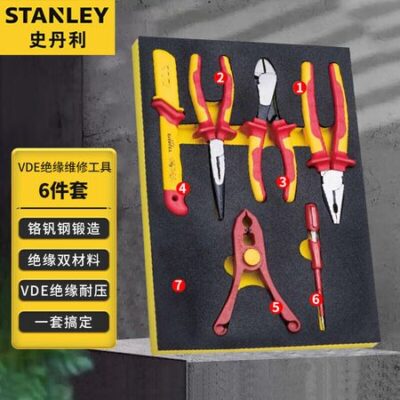 Stanley, набор инструментов для ремонта изоляции VDE, 6 предметов, специальный набор для электрика, кусачки STMT77892-23