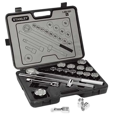 STANLEY Набор инструментов Набор торцевых инструментов Набор инструментов для авторемонта Машинный ремонт Комбинированный инструмент Головка Набор гаечных ключей с храповым механизмом Набор инструментов из 19 предметов 3/4 дюйма 89-101-23C