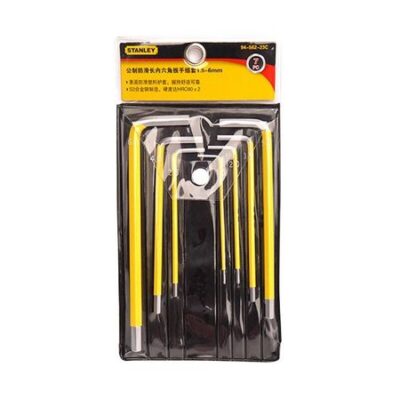 Stanley Набор из 7 предметов: метрическая нескользящая удлиненная шаровая головка, набор внутренних шести ключей, один пластиковый шестигранный ключ с длинноволновой головкой 94-562-23C на складе