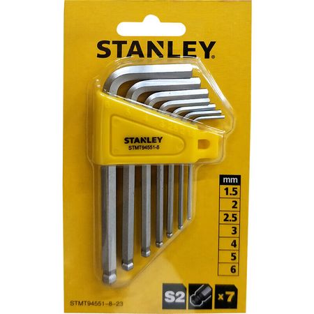 STANLEY Набор из 7 предметов метрических шестигранных ключей с шаровой головкой с короткой ручкой. Бытовой шестигранный ключ с шаровой головкой с короткой ручкой 1,5-6 мм STMT94551-8-23 в наличии