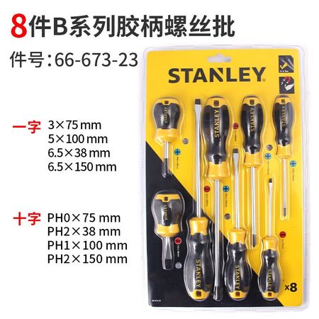 Stanley Набор отверток, 8 предметов, с резиновой ручкой, крестовая отвертка, ручная отвертка, 66-673-23