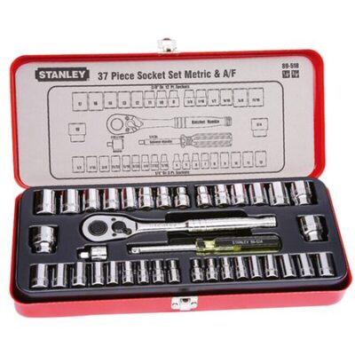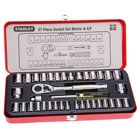 Stanley Набор торцевых инструментов из 37 предметов, набор инструментов для ремонта машин, авторемонта, ящик для инструментов, метрический 6,3/10 мм 89-518-22