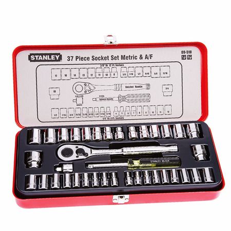 Stanley Набор торцевых ключей метрических размеров 6,3 и 10 мм из 37 предметов, небольшой ключ с трещоткой, авторемонт 89-518-22