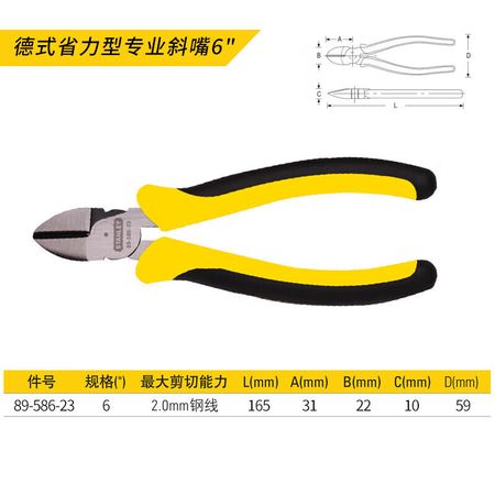 Stanley Немецкие трудосберегающие профессиональные диагональные плоскогубцы Диагональные плоскогубцы 6 дюймов Электрические косогубцы Кусачки 89-586-23