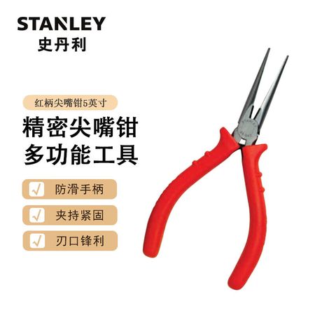 Stanley плоскогубцы с острым носом, кончик ручной работы, маленький кончик, красная ручка, плоскогубцы с острым носом, 5 дюймов 84-047-23