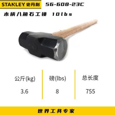 Stanley STANLEY восьмиугольный молоток для каменной кладки с деревянной ручкой, 10 фунтов с квадратной головкой, сверхмощный молоток для сноса стен, молоток 56-608-23C