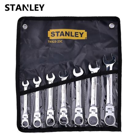 Stanley TK923-23C Набор из 7 предметов с метрической живой головкой с храповым механизмом, открытый набор быстрых ключей двойного назначения, двусторонний ключ с храповым механизмом