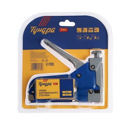 Степлер мебельный ТУНДРА ВДОМ, металлический корпус, тип скоб 53, 4 — 14 мм. Линейка инструментов ТУНДРА ВДОМ является продуктом нашей собственной разработки. Мы учли все современные требования к качеству и проработали индивидуальную упаковку. Нам важно, чтобы она была в едином стиле и максимально удобна для розничной продажи. Ассортимент товара был подобран на основе длительного анализа потребностей наших покупателей. <br> Степлер мебельный ТУНДРА применяется для отделочных работ. Степлер подходит для работ с такими материалами, как ткань, дерево, фанера и ДСП. Тип скоб 53, размер от 4 до 14 мм. В комплекте со степлером идут скобы 6 мм тип 53.