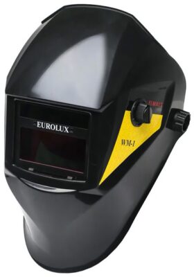 Особенности:Сварочная маска Eurolux WM-1 предназначена для защиты глаз от видимого, ультрафиолетового и инфракрасного излучения, а также для защиты головы и шеи от попадания искр при сварочных работах. Маска данного типа удобна, поскольку светофильтр автоматически затемняется при зажигании дуги. Такой светофильтр назвали хамелеоном из-за способности автоматически затемняться. Степень затемнения можно настраивать с помощью встроенного регулятора в зависимости от модели маски.СветофильтрСветофильтр сварочных масок Eurolux имеет структуру слоеного пирога. Первым слоем идет защитный экран, предназначенный для защиты внутренних слоев от механических повреждений. Затем идут несколько слоев жидких кристаллов, чередуясь с поляризационными пленками, для защиты глаз от яркого видимого излучения. И, наконец, последним слоем идет ультрафиолетовый и инфракрасный фильтр, который практически полностью поглощает ультрафиолетовое и инфракрасное излучение.Меры предосторожностиПри сварке брызги расплавленного металла разлетаются на значительное расстояние, что вызывает опасность ожога. Поэтому для защиты необходимо использовать сварочные маски.Меры предосторожности при работе со сварочной маской:- Маска не подходит для лазерной и газовой сварки.- Не кладите маску на горячую поверхность.- Не разбирайте автоматический светофильтр.- Маска не защищает от взрывчатых устройств и коррозийных жидкостей.- Если светофильтр не срабатывает сразу после зажигания дуги, незамедлительно прекратите его использование. Проверьте автоматический светофильтр.- Не погружайте маску в воду.- Защищайте фильтр от контакта с жидкостью и грязью.- Чистите поверхность фильтра регулярно.- Не используйте сильные моющие растворы.- Всегда держите датчики и солнечные батареи чистыми. Используйте чистую ткань.